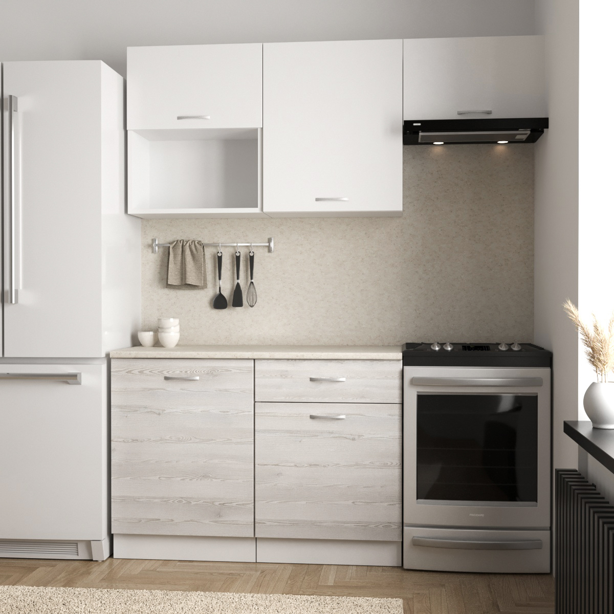 Кухонный гарнитур Темпо №3 Белый/Сосна Лофт/Белый жемчуг/столеш. Берилл бежевый (без мойки) 1,2 м