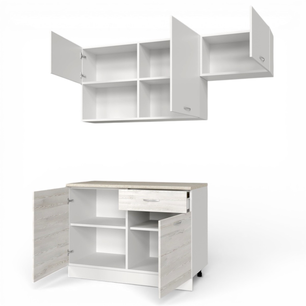—Кухонный гарнитур Темпо №3 Белый/Сосна Лофт/Белый жемчуг/столеш. Берилл бежевый (без мойки) 1,2 м