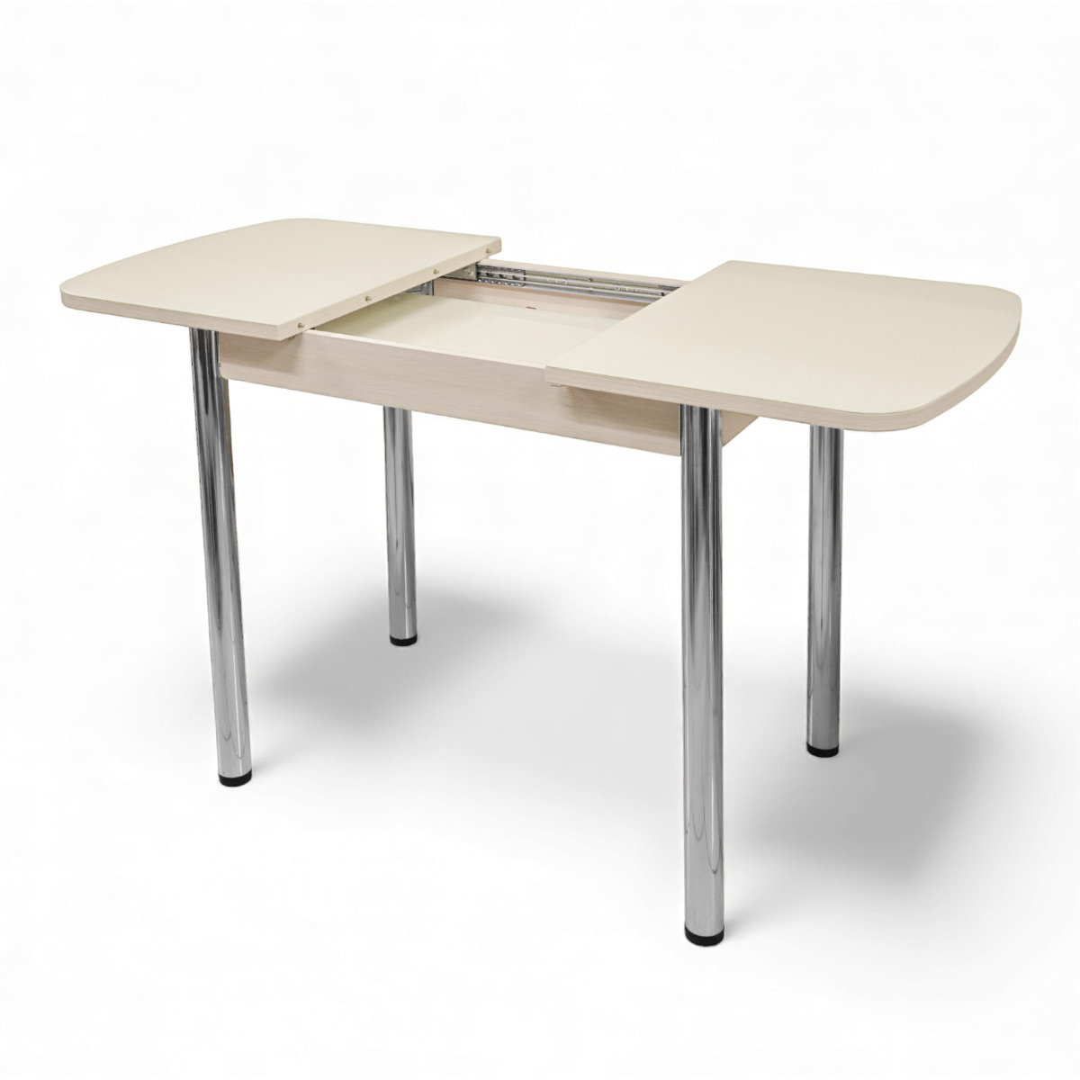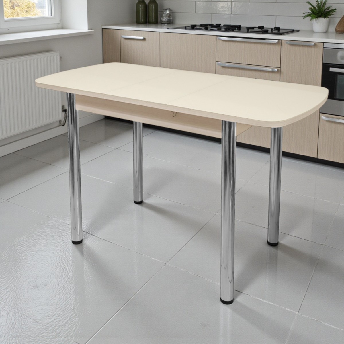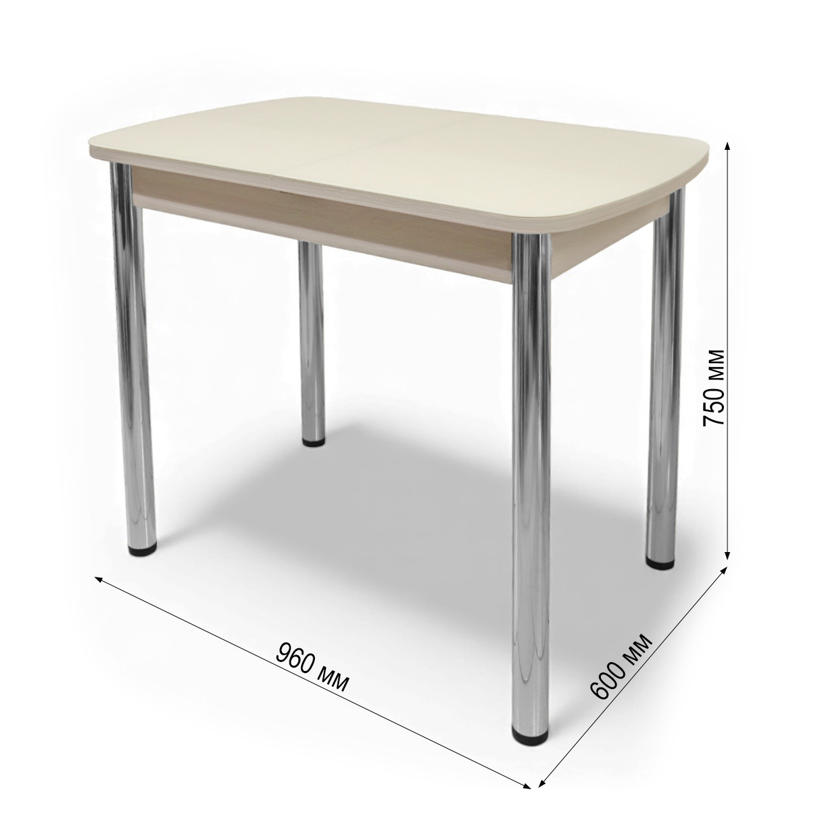 —Стол ПГ-мини СТ 960(+300)*600, ЛДСП Дуб молочный, Стекло Песочное/ хром