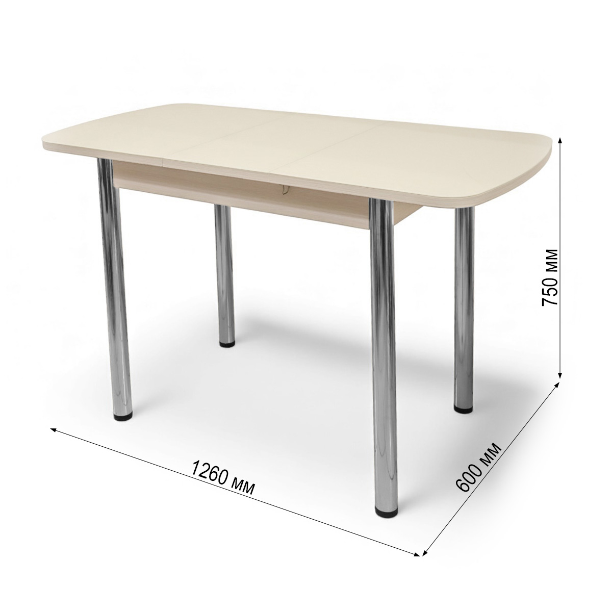 Стол ПГ-мини СТ 960(+300)*600, ЛДСП Дуб молочный, Стекло Песочное/ хром