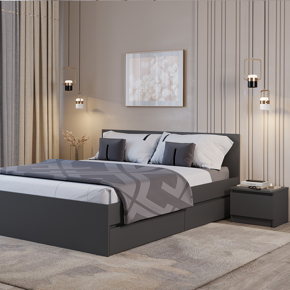 Прикроватная тумба «Симпл» ТБ-11 — это идеальное решение для компактных спален и небольших пространств. Несмотря на миниатюрные размеры, модель вмещает всё необходимое: в выдвижном ящике удобно хранить белье и личные вещи, а на крышке можно разместить косметику, очки или книгу. Ящик оснащен шариковыми направляющими, которые обеспечивают легкое и бесшумное открывание. Лаконичный дизайн с интегрированным срезом вместо ручки и глубокий оттенок «графит» подчеркивают минимализм коллекции.