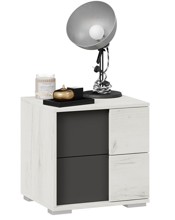Тумба состоит из двух вместительных ящиков на роликовых направляющих. Удобное и бесшумное открытие ящиков способом захвата рукой.